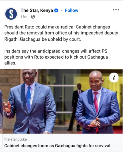 President William Ruto may be forced to make some radical changes in his Cabinet, this is if the Court will uphold the impeachment of his embattled Deputy President, honorable Rigathi Gachagua.