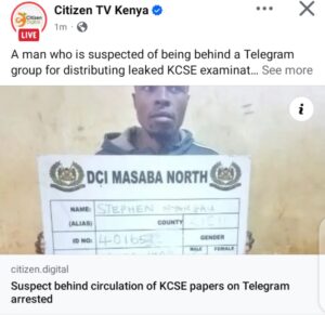 Detectives who are attached to the Kenya National Examinations Council nabbed a suspect by the name of Stephen Nyang’au Mbeche in Masaba North, Kisii County, who has been circulating KCSE Papers on Telegram to parents and also the candidates.